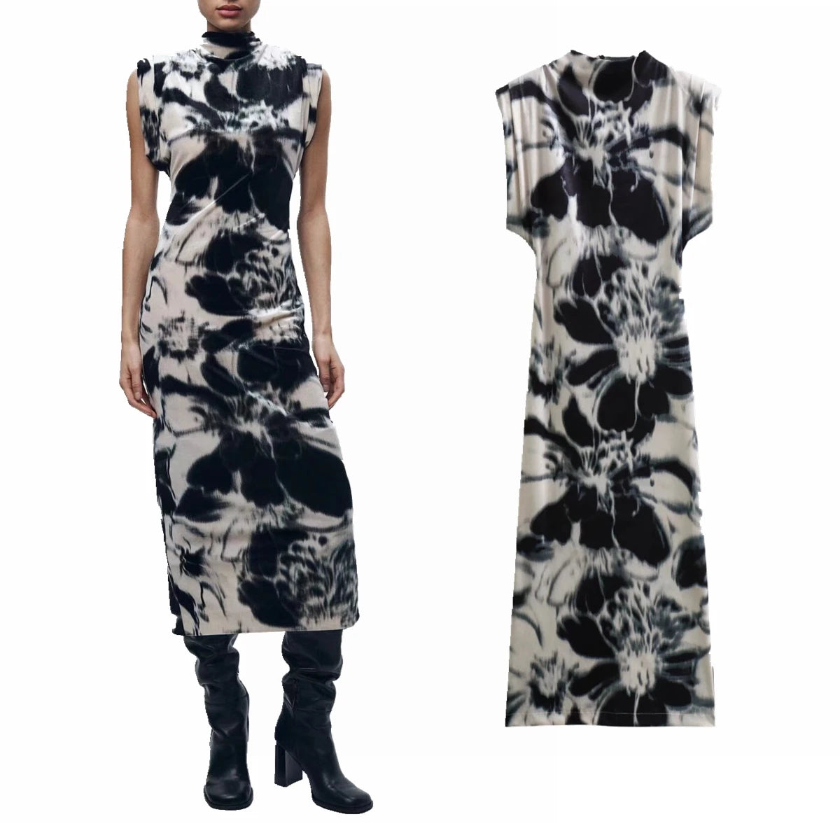 Rindu's Petal Whisper Dress is a perfect blend of indie folk style and modern elegance. Featuring a slim fit and sheath silhouette, this ankle-length dress is crafted from polyester with a subtle stretch for added comfort. The half high collar and print pattern add a unique touch to the sophisticated design, making it suitable for any season.